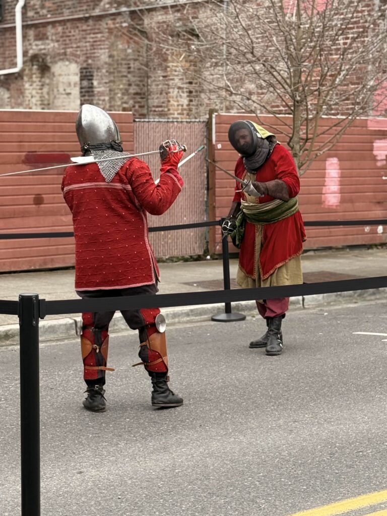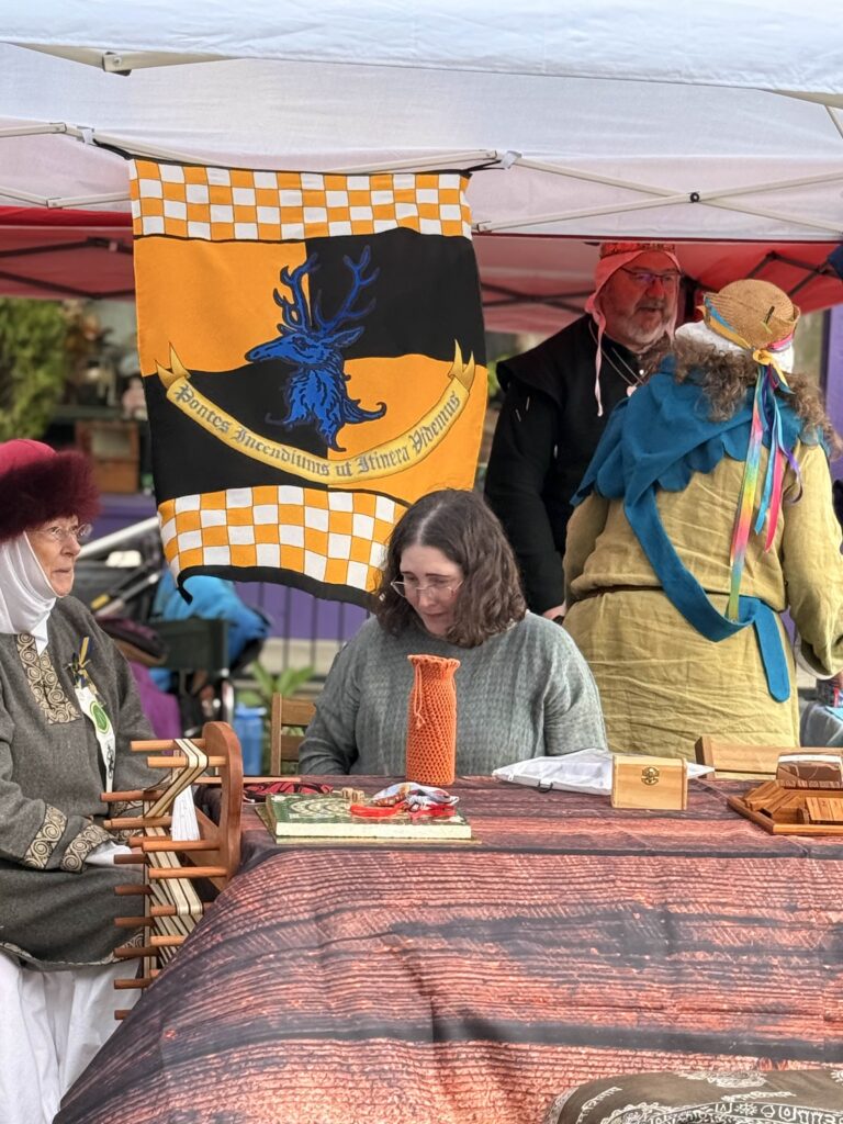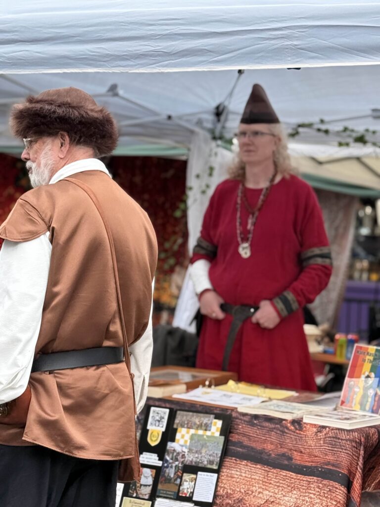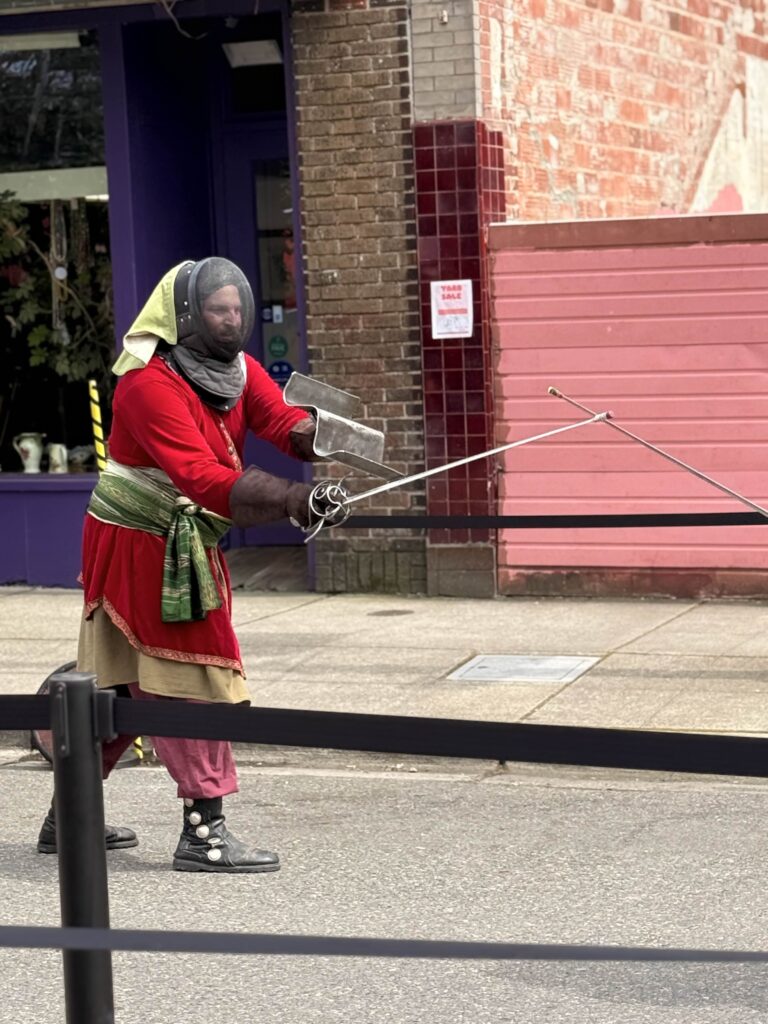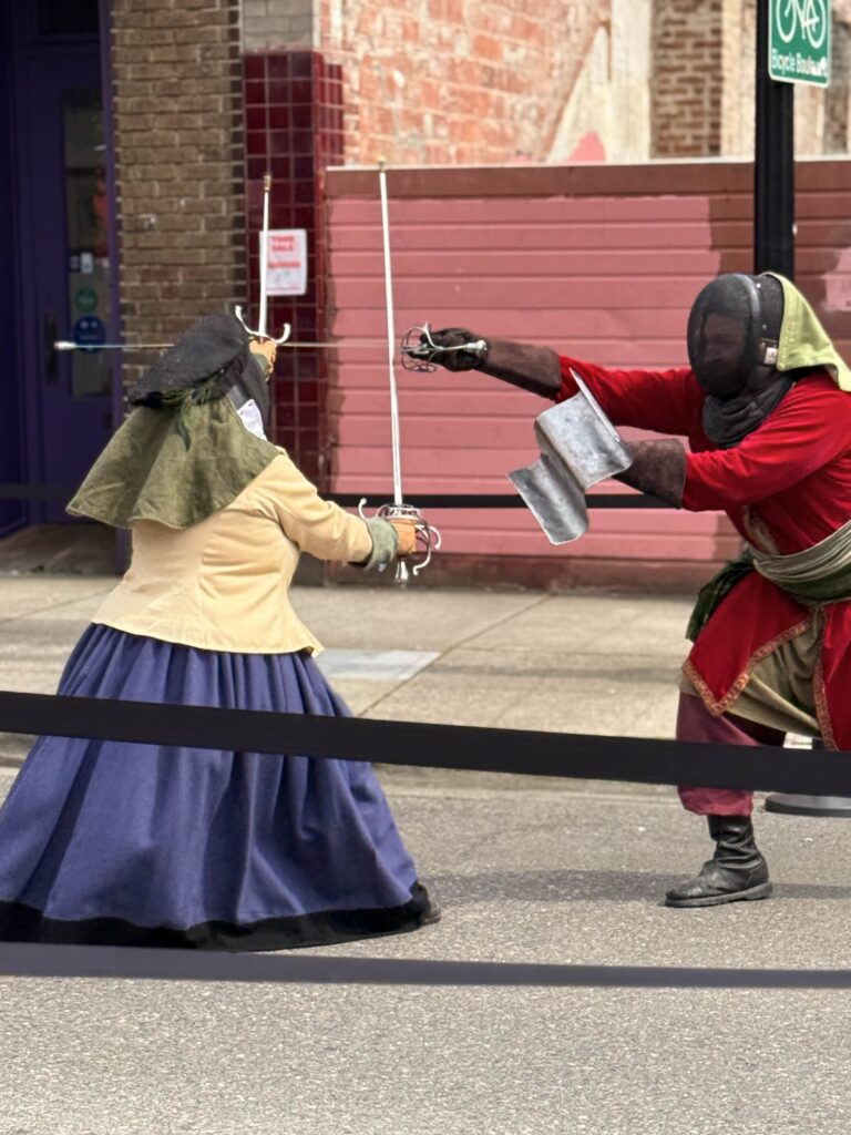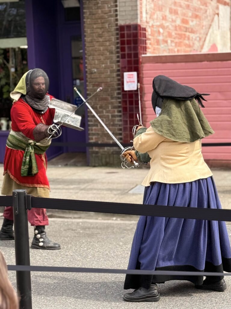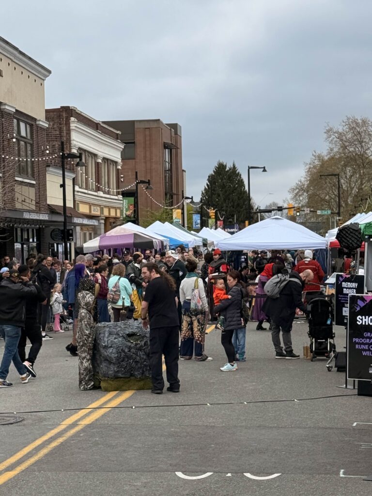 Between performances, attendees could watch sword tournaments, or let axes fly from a mobile axe-throwing cart. For those with four-legged companions, Erasmus’s Protector Pet Contest gave animals their moment in the spotlight. For the adventurous, the Rune Quest sent attendees on a hunt through vendor booths to collect runes distributed across the event. A Window Decorating Contest added a festive layer to the surrounding storefronts. The day closed with the Dragon’s Landing Costume Contest, a fitting finale for a crowd that took their garb seriously.