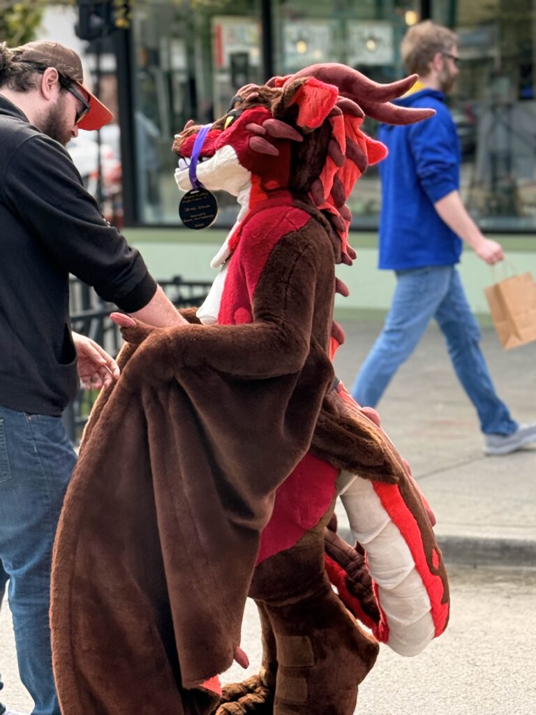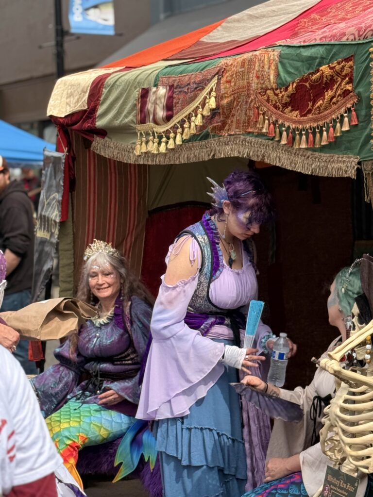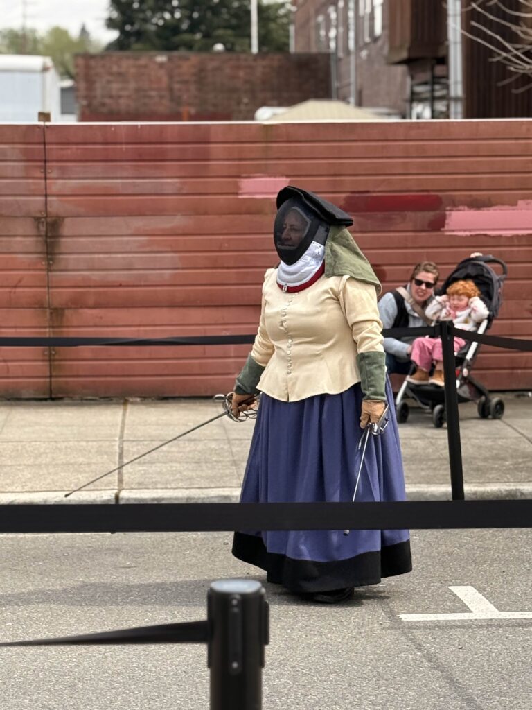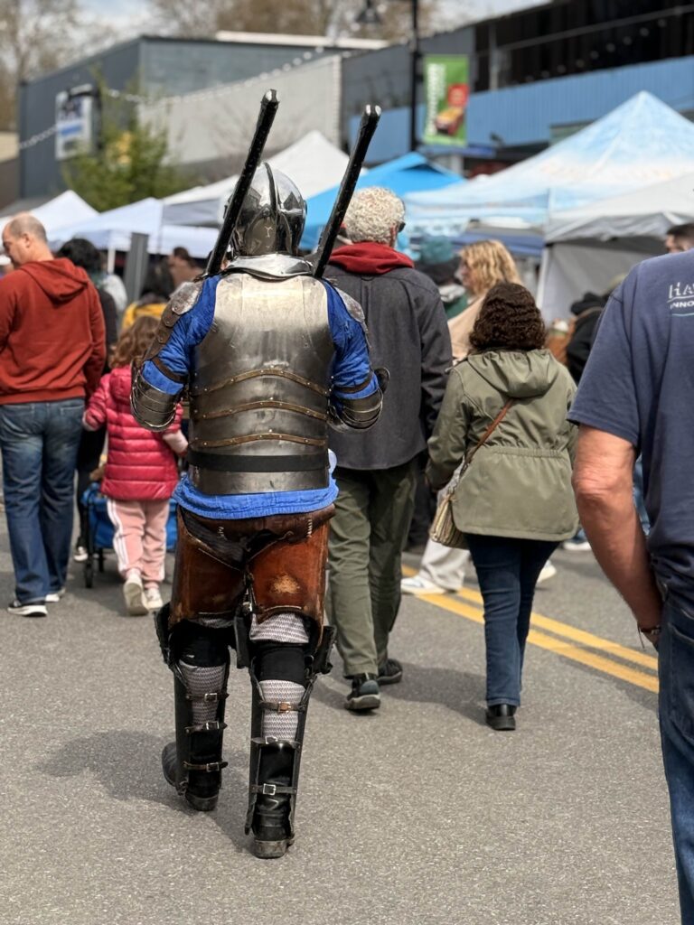 For the seventh year, the Renton Municipal Arts Commission brought Dragon’s Landing to Wells Avenue between South 2nd and South 3rd Streets, and the block answered in full costume and around 1400 visitors. From 10 a.m. to 5 p.m., leather armor, chain mail, wizard robes, and more than a few elven ears filled the street. Knights and nobles mingled with fantastical creatures, and the air at times carried the faint smell of fire.